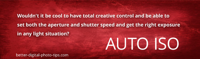 **MANUAL MODE.** This is the best mode to use with Auto ISO setting. Think about this. Wouldn't it be cool to have total creative control and be able to set both the aperture and shutter and get the right exposure in any photographic situation? Well, now you can with Auto ISO. This is what it was designed to do.