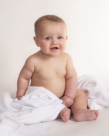 One way to insure that your baby's eyes aren't hurt from using flash is to use natural lighting instead. The lighting in the baby portrait below is 100% natural.