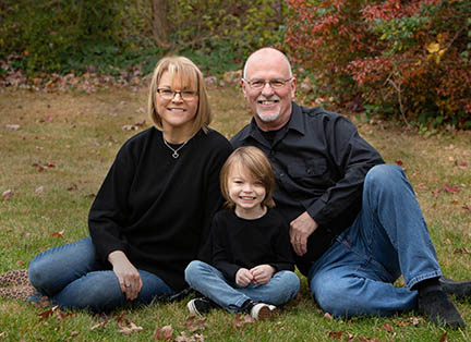 A different posing technique is needed when you are photographing three adults. When you have a mom, dad and a school-aged child, you can use poses that have the child standing and the adults sitting.