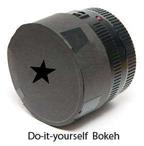The bokeh lens device shown here, made with black paper would produce star-shaped highlights.